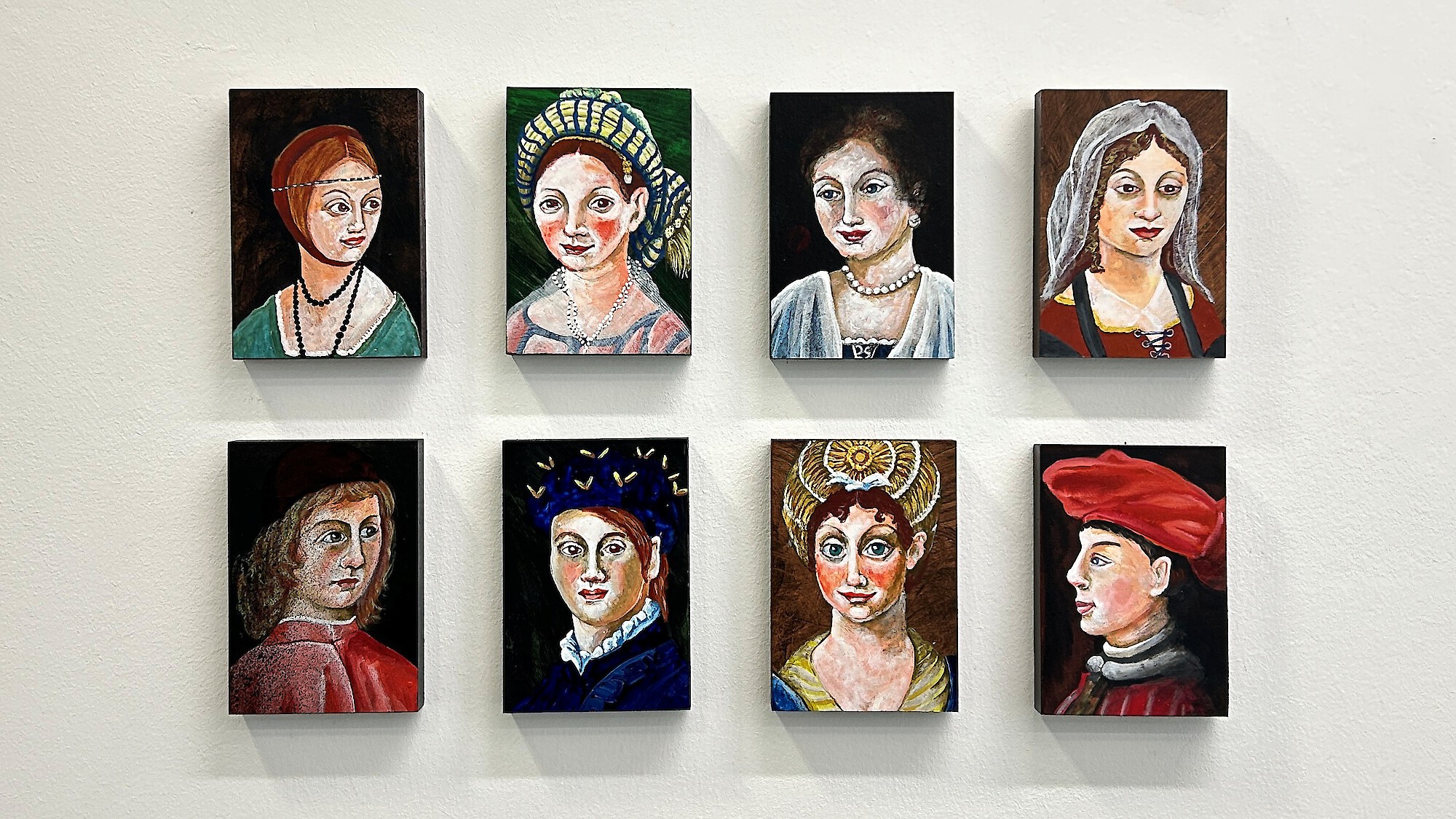 Die Serien der Künstlerin drehen sich um unterschiedliche Themen. So hat sie sich bereits mit den Märchenbildern (Grimm-Märchen), den Fabelwesen (des Straßburger Münsters), dem biblischen „Eva und Adam“-Zyklus sowie in einer tiefergreifenden Auseinandersetzung mit Lewis Carrolls „Alice im Wunderland“ beschäftigt. An die Reihe der Kaiserbildnisse schließt sich nun eine Reihe Renaissance-Porträts an. Mit der Ausstellung „Neue Schöne Welt“ greift die Künstlerin den Umbruch und Aufbruch in der Welt mit ihrer fantastisch einfühlsamen Art und Weise auf.